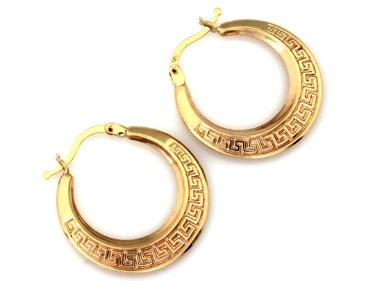 Kolczyki złote płaskie koła z greckim wzorem