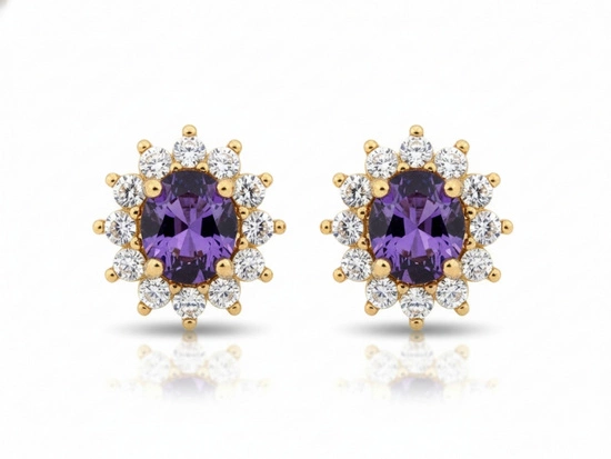 Kolczyki złote okrągła markiza na sztyfcie z fioletowym kamieniem