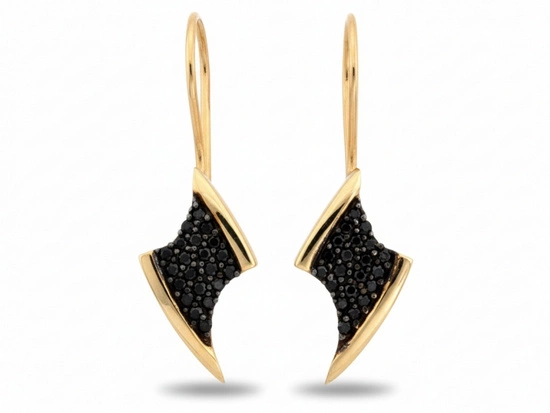 Kolczyki złote angielskie na biglu z czarnymi cyrkoniami