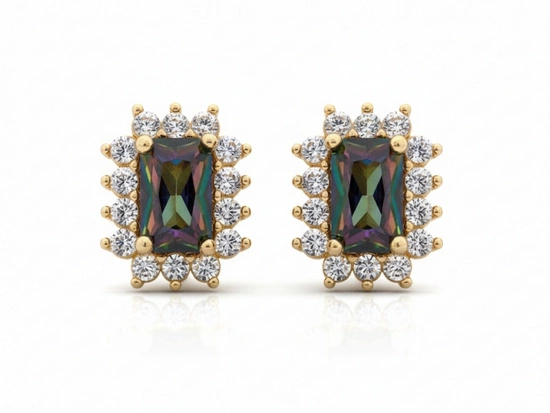 Kolczyki złote na sztyfcie prostokątne z topazem mistycznym