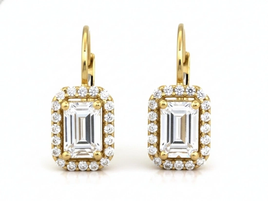 Kolczyki złote prostokątna cyrkonia w oprawie zapięcie angielskie