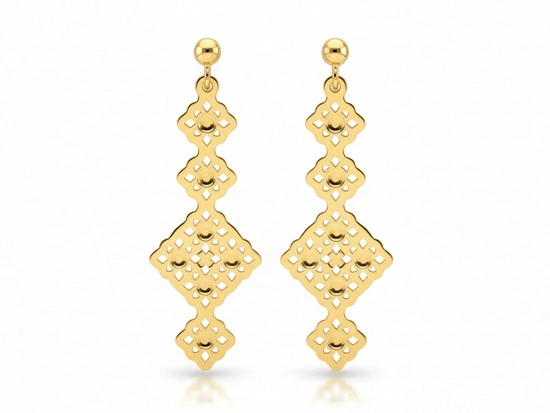 - Złote kolczyki o ponadczasowym kształcie, które będą pięknym dodatkiem dla każdej Pani. Nasze surowe normy kontrolne oraz 20 letni staż w branży jubilerskiej gwarantuje Państwu zakup biżuterii najwyższej jakości. W połą