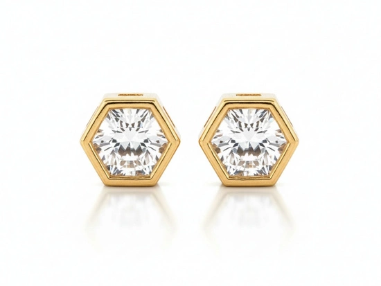 Kolczyki złote sześciokątne na sztyfcie z cyrkonią