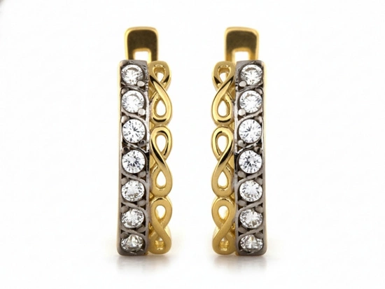 Złote kolczyki angielskie z cyrkoniami i małymi nieskończonościami