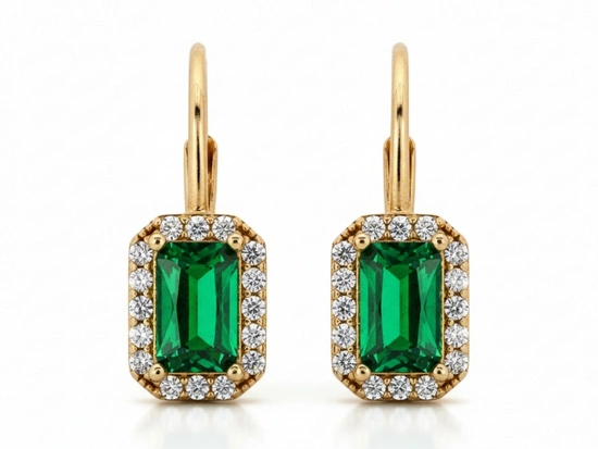 Kolczyki złote prostokątna zielona cyrkonia w oprawie zapięcie angielskie