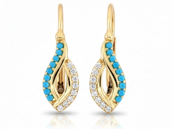 Kolczyki złote angielskie zapięcie z niebieskimi cyrkoniami