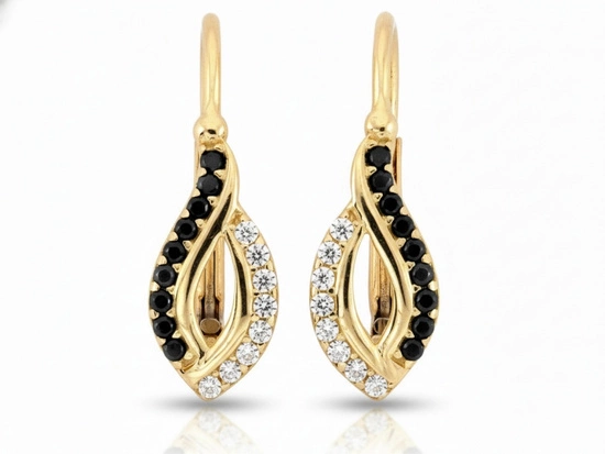 Kolczyki złote angielskie zapięcie z czarnymi i białymi cyrkoniami