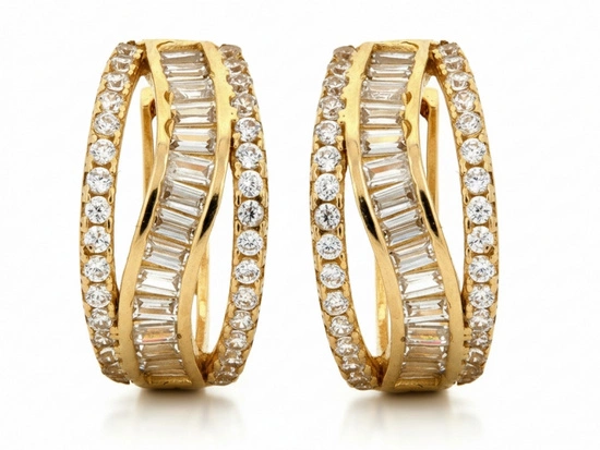 Złote kolczyki małe kółka szerokie bogato zdobione cyrkoniami