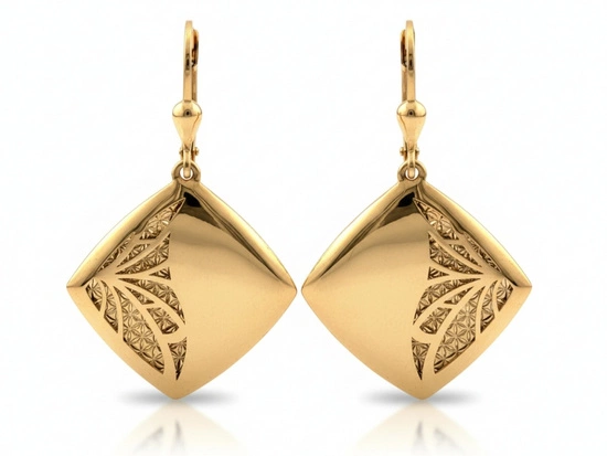 Kolczyki złote wiszące kwadratowe z ażurem efektowne