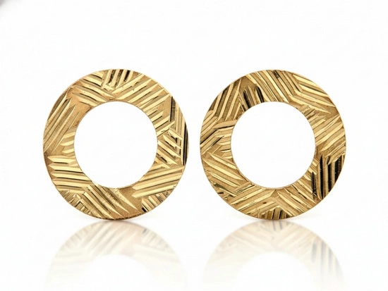 Kolczyki złote na sztyfcie ringi zdobione frezowane
