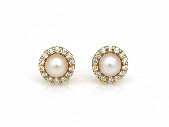Kolczyki złote z perłą i cyrkoniami markiza