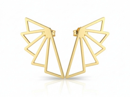 Kolczyki złote geometryczne wachlarze na sztyfcie