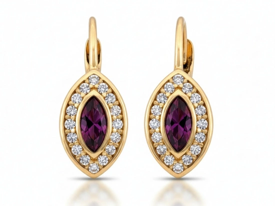 Kolczyki złote angielskie z cyrkoniami z czerwonym oczkiem