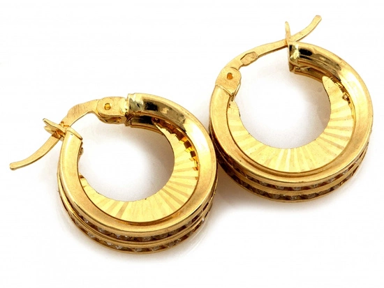 - Złote kolczyki o ponadczasowym kształcie, które będą pięknym dodatkiem dla każdej Pani. Nasze surowe normy kontrolne oraz 20 letni staż w branży jubilerskiej gwarantuje Państwu zakup biżuterii najwyższej jakości. W połą