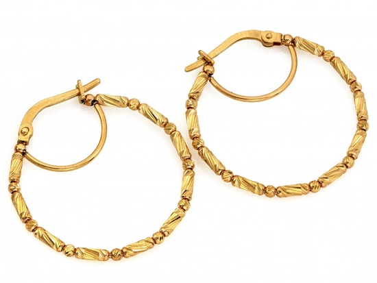 - Złote kolczyki o ponadczasowym kształcie, które będą pięknym dodatkiem dla każdej Pani. Nasze surowe normy kontrolne oraz 20 letni staż w branży jubilerskiej gwarantuje Państwu zakup biżuterii najwyższej jakości. W połą