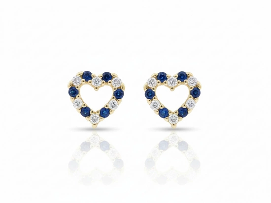 Subtelne złote kolczyki serce z cyrkoniami na sztyfcie