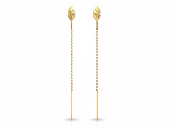 Kolczyki złote przeciągane z listkiem