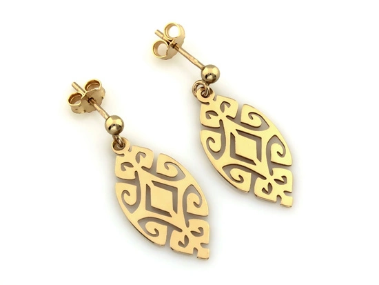 - Złote kolczyki o ponadczasowym kształcie, które będą pięknym dodatkiem dla każdej Pani. Nasze surowe normy kontrolne oraz 20 letni staż w branży jubilerskiej gwarantuje Państwu zakup biżuterii najwyższej jakości. W połą
