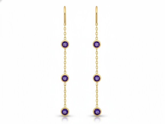 Złote kolczyki długie wiszące z fioletowymi cyrkoniami przeciągane