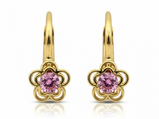 Kolczyki złote angielskie delikatne z kwiatkiem dla dziewczynki