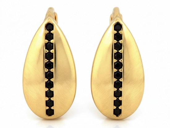 Kolczyki złote angielskie jak krople z czarnymi cyrkoniami