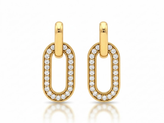 Kolczyki złote owalne z cyrkoniami na sztyfcie