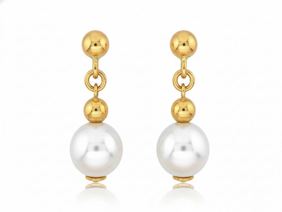 Kolczyki złote delikatne wiszące na sztyfcie z perłą