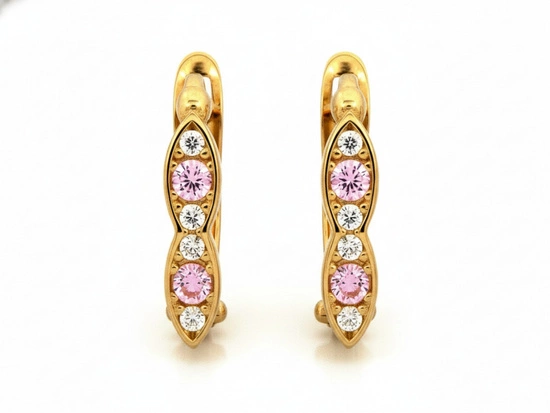 Kolczyki złote z różowymi cyrkoniami idealne dla dziewczynki