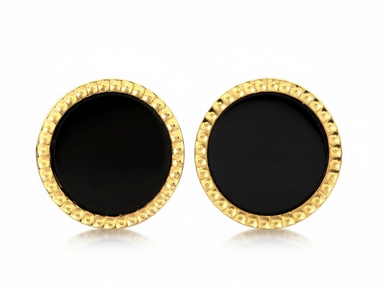 Złote kolczyki okrągłe na sztyfcie z czarnym kamieniem
