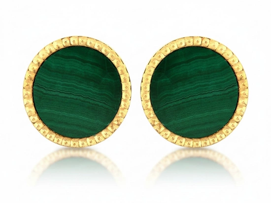 Złote kolczyki okrągłe na sztyfcie z malachitem