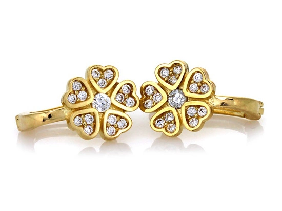 Kolczyki złote dla dziewczynki koniczyna z cyrkonii