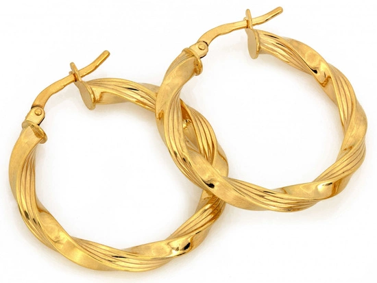- Złote kolczyki o ponadczasowym kształcie, które będą pięknym dodatkiem dla każdej Pani. Nasze surowe normy kontrolne oraz 20 letni staż w branży jubilerskiej gwarantuje Państwu zakup biżuterii najwyższej jakości. W połą