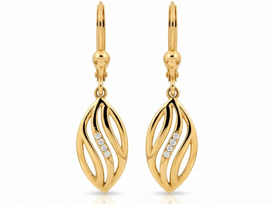 - Złote kolczyki o ponadczasowym kształcie, które będą pięknym dodatkiem dla każdej Pani. Nasze surowe normy kontrolne oraz 20 letni staż w branży jubilerskiej gwarantuje Państwu zakup biżuterii najwyższej jakości. W połą