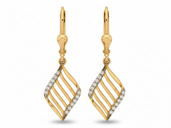 - Złote kolczyki o ponadczasowym kształcie, które będą pięknym dodatkiem dla każdej Pani. Nasze surowe normy kontrolne oraz 20 letni staż w branży jubilerskiej gwarantuje Państwu zakup biżuterii najwyższej jakości. W połą