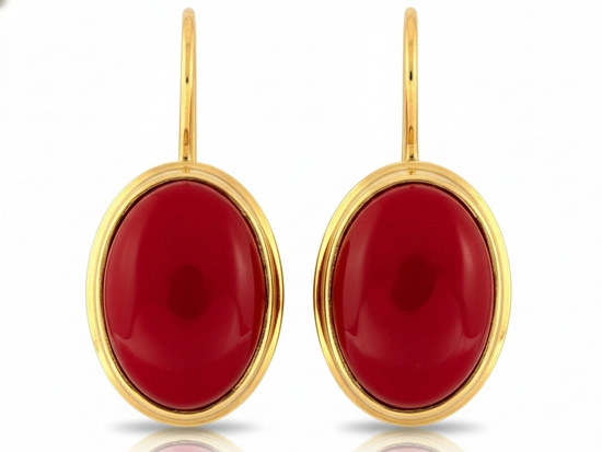 Złote kolczyki na biglu z koralowcem syntetycznym
