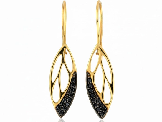 Kolczyki złote duże na biglu z czarnymi cyrkoniami