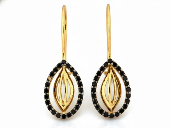 Kolczyki złote na biglu z czarnymi cyrkoniami