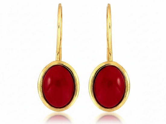 Kolczyki złote na biglu z owalnym koralem syntetycznym