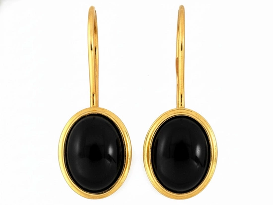 Kolczyki złote na biglu z czarnym kamieniem syntetycznym