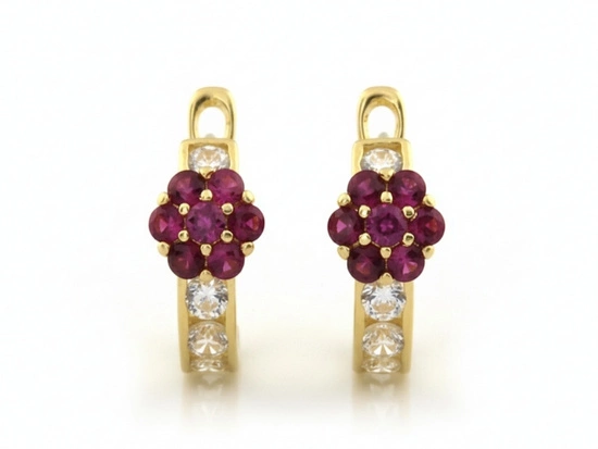 Złote kolczyki dla dziewczynki z różowym kwiatkiem