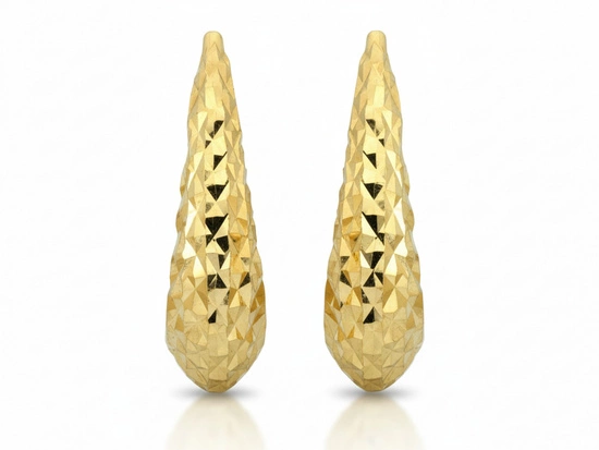 - Złote kolczyki o ponadczasowym kształcie, które będą pięknym dodatkiem dla każdej Pani. Nasze surowe normy kontrolne oraz 20 letni staż w branży jubilerskiej gwarantuje Państwu zakup biżuterii najwyższej jakości. W połą