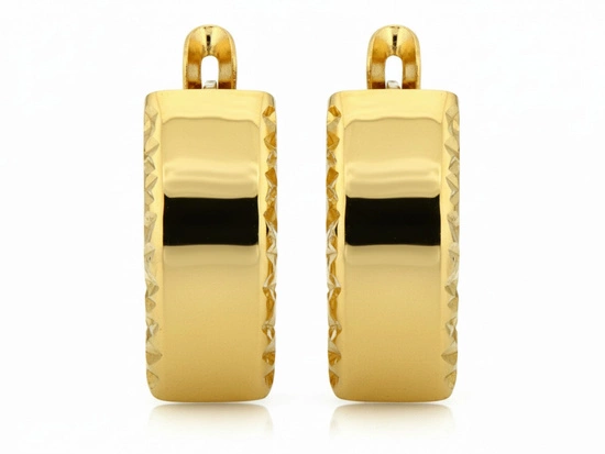 • Złote kolczyki o ponadczasowym kształcie, które będą pięknym dodatkiem dla każdej Pani. Nasze surowe normy kontrolne oraz 20 letni staż w branży jubilerskiej gwarantuje Państwu zakup biżuterii najwyższej jakości. W połą
