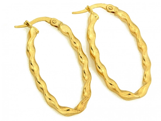 - Złote kolczyki o ponadczasowym kształcie, które będą pięknym dodatkiem dla każdej Pani. Nasze surowe normy kontrolne oraz 20 letni staż w branży jubilerskiej gwarantuje Państwu zakup biżuterii najwyższej jakości. W połą