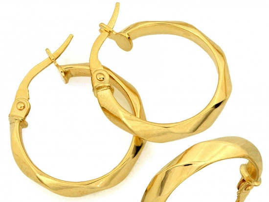 - Złote kolczyki o ponadczasowym kształcie, które będą pięknym dodatkiem dla każdej Pani. Nasze surowe normy kontrolne oraz 20 letni staż w branży jubilerskiej gwarantuje Państwu zakup biżuterii najwyższej jakości. W połą