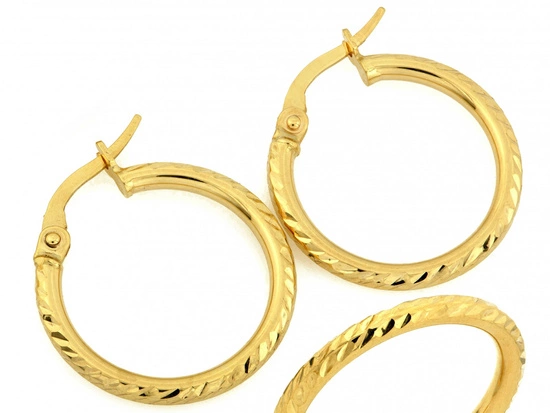 - Złote kolczyki o ponadczasowym kształcie, które będą pięknym dodatkiem dla każdej Pani. Nasze surowe normy kontrolne oraz 20 letni staż w branży jubilerskiej gwarantuje Państwu zakup biżuterii najwyższej jakości. W połą