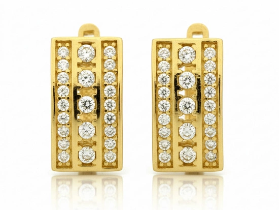 - Złote kolczyki o ponadczasowym kształcie, które będą pięknym dodatkiem dla każdej Pani. Nasze surowe normy kontrolne oraz 20 letni staż w branży jubilerskiej gwarantuje Państwu zakup biżuterii najwyższej jakości. W połą