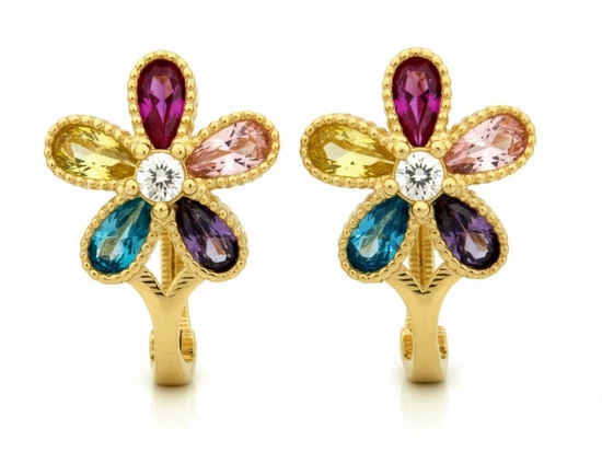Kolczyki złote kolorowy kwiatek z cyrkoniami angielskie zapięcie