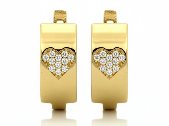 Złote kolczyki z sercem wysadzanym cyrkoniami