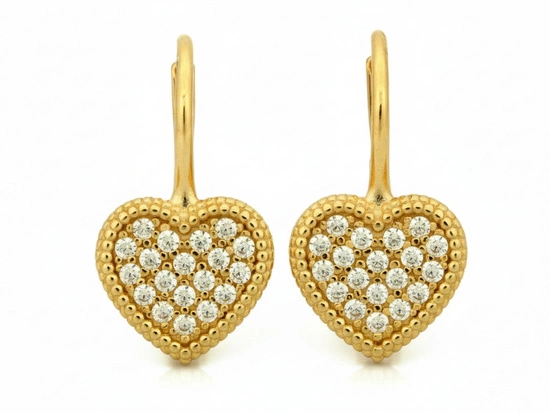Kolczyki złote angielskie z sercem z cyrkoniami
