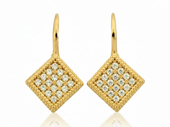Kolczyki złote kwadraty z cyrkoniami angielskie zapięcie